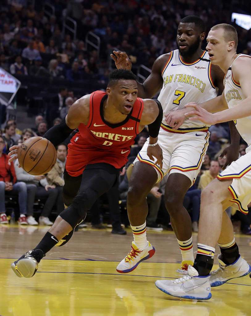 The Warriors offense picked up in the second quarter. The Rockets won the period 34-33 and finished the first half with a 22-point advantage. The Rockets made 15 threes in 26 tries. The Warriors made just one. James Harden had 16, Russell Westbrook 17 to pace the Rockets’ attack. P.J.Tucker finished the half with 15. He made five threes. Andrew Wiggins led the W’s with 10. Marquese Chriss had 8.