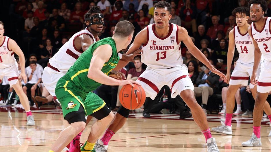 gostanford.com photo: Stanford Cardinal Oscar da Silva (13) stands in the way of an Oregon Duck on Saturday night in Oregon