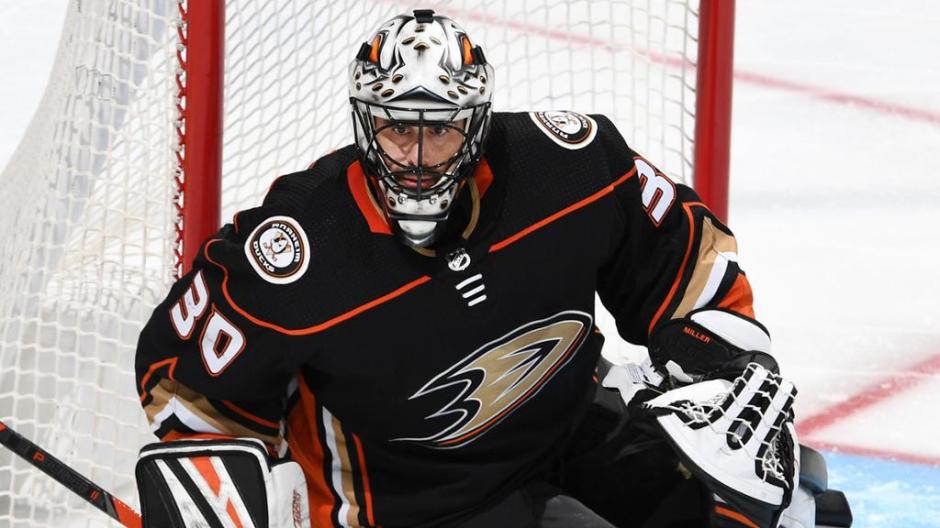 The Anaheim Ducks Ryan Miller is hoping the NHL season will continue at some point so he would have a chance at catching former Detroit goalie Dominik Hasek who is two wins ahead of Miller on the all time wins for goalies list (file photo from nhl.com)