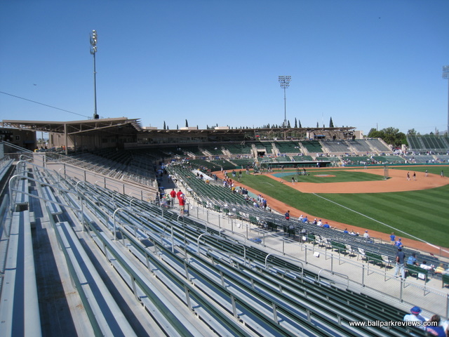 scorebig.com file photo: Shot of Ho Ho Kam Stadium in Mesa AZ spring training home of the Oakland A’s from the left seats looking down the first line one of the training facilities that MLB has ordered vacated due to the latest outbreak of Covid-19
