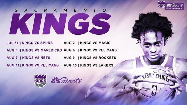 The Sacramento Kings De’Aaron Fox billboards the new Kings regular season schedule the last eight games starting July 31st though August 13th (NBC Sports image)