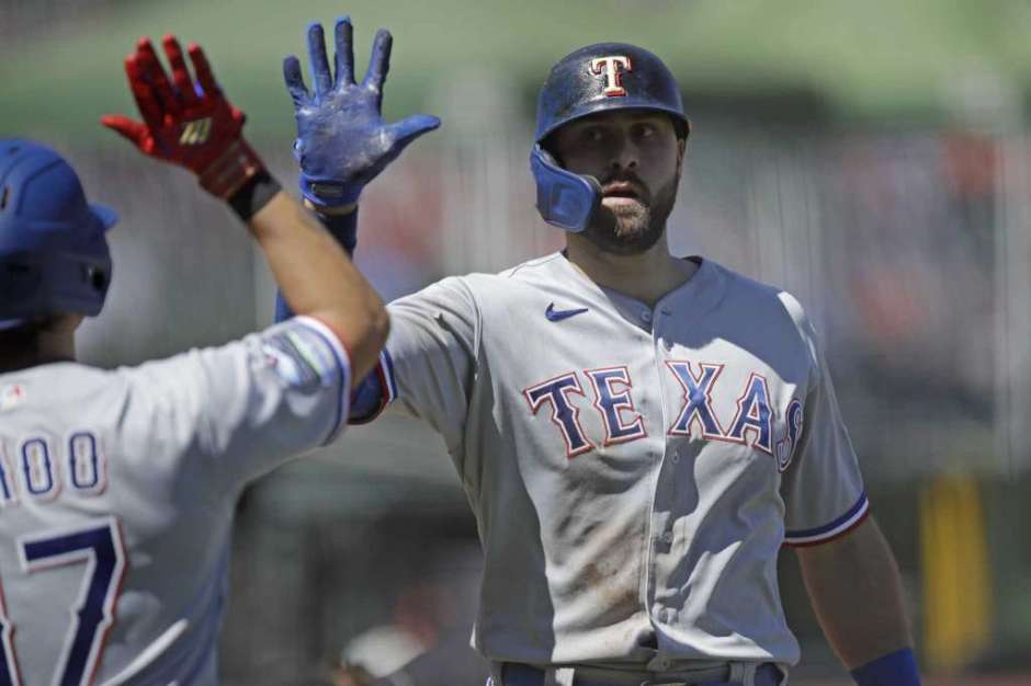 Following the Calhoun sacrifice fly, Joey Gallo launched a three-run home run over the 415 mark in triples alley that last season would have been in the park; however, the fences were moved in six feet and it was the second home run of the season for Gallo.