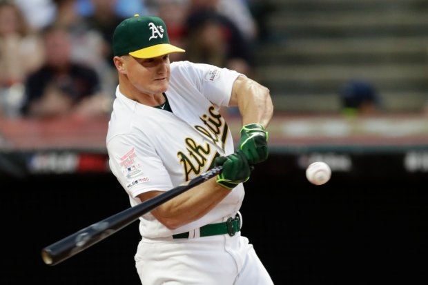 The Oakland A’s and Matt Chapman will be at Oracle Park in San Francisco for a three game series starting this Friday night. Chapman is shown here from last year’s Home Run Derby at last year’s All-Star game in Minnesota (AP file photo)