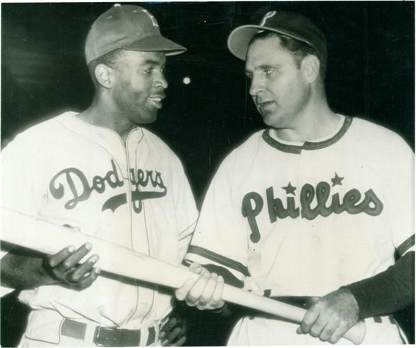 The Los Angeles Dodgers were supposed to honor former Brooklyn Dodger Jackie Robinson this past April 15th for the anniversary of Robinson’s breaking the color bearer in 1947 the tribute never took place because of the Coronavirus shutdown. Here in this photo is Robinson with former Philadelphia Phillies manager Ben Chapman in 1947. Chapman was Robinson said the worst racist offender in baseball he ever encountered. Chapman only posed for this photo because the New York press wrote all the racist things that Chapman said and Chapman relented under pressure to show he could be in Robinson’s company for the photo (lelands.com file photo)