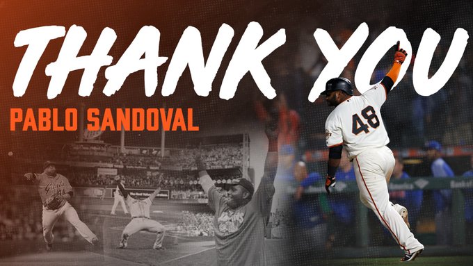 Pablo Sandoval’s run with the San Francisco Giants came to an end before Thursday’s San Francisco Giants at San Diego Padres game at Petco Park where the Panda was told of his unconditional release after helping the franchise win three World Series in 2010, 2012, and 2014. (@SF Giants)