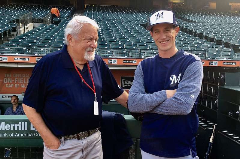 Gary Hughes (left) former MLB scout for the Boston Red Sox and the Arizona Diamondbacks worked in baseball for over 54 years is seen here with Milwaukee Brewers manager Craig Counsell (right). Hughes son is married to Counsell’s sister keeping baseball in the family. Hughes passed away Sat Sep 19, 2020 at age 79. This photo was taken on Aug 21, 2017 and in the bottom left hand corner seated in the Brewers dugout is former SF Examiner reporter Jorge Ortiz. (file photo taken by AP reporter Janie McCauley)