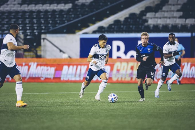 Vancouver (8-12-0) made its comeback early in the second half. Left back Ali Adnan rifled in a free kick from 30 yards out into the upper left corner of the net that Quakes goalkeeper J.T. Marcinkowski had no chance at in the 51st minute. It was Adnan’s second goal of the season.