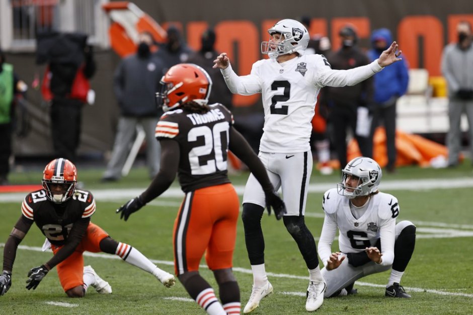 Raiders’ kicker Daniel Carlson nailed three field goals from 29, 33 and 24 yards despite the bad weather.