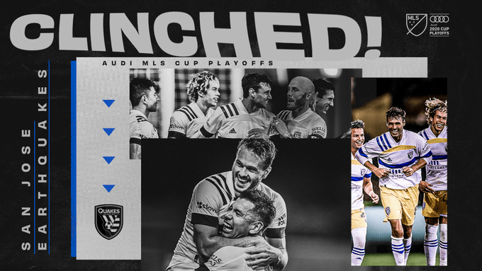 The San Jose Earthquakes clinch the last and final eighth spot of the MLS Western Division Conference to make the post season against LAFC on Wed Nov 4, 2020 at Earthquakes Stadium in San Jose (@SJEarthquakes photo)