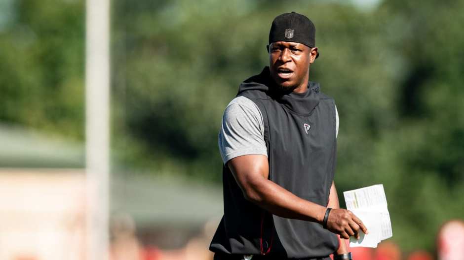 Raheem Morris the interim head coach at the Atlanta Falcons has turned the team around winning three of their last four games after going 0-5 the question will he get noticed after many black coaches have been turned down for head coaching jobs in the NFL? (file photo from the Atlanta Falcons)