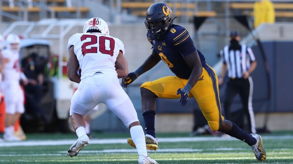 The Cal Bears linebacker Kuony Deng (8) led the Bears with 14 tackles against the Stanford Cardinal on Fri Nov 27, 2020 (calbears.com photo)