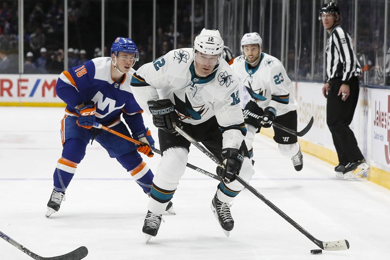 The San Jose Sharks forward Patrick Marleau in this Feb 22, 2020 photo skating against the New York Islanders will be doing a long tour of duty as the Sharks will open their first of ten games of the season on the road starting in Arizona on Jan 14, 2021 in Glendale (AP News photo)
