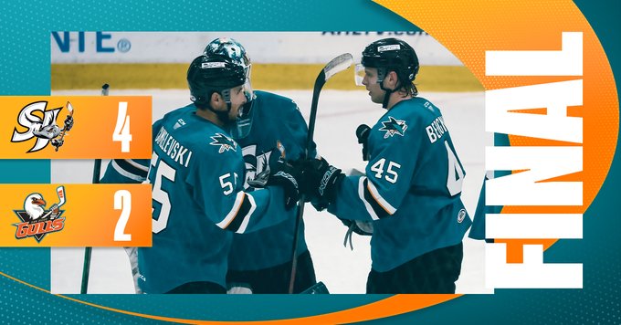 SAN JOSE, Calif—The San Jose Barracuda scored three unanswered goals and then held on to defeat the San Diego Gulls 4-2 on Tuesday evening at Solar4America Ice At San Jose.