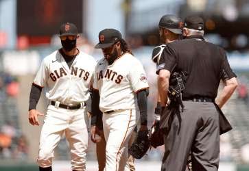 #1 San Francisco Giants starter Johnny Cueto who suffered lat tightness in his pitching arm after going 5 2/3 innings on Wednesday afternoon.