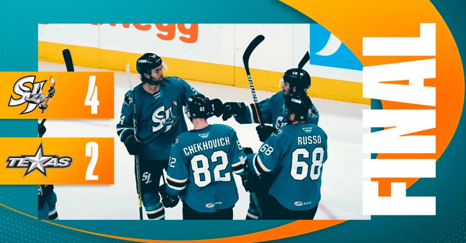 SAN JOSE, Calif—The San Jose Barracuda came back from two goals down in the second period to score three unanswered in the middle frame en route to a 4-2 victory over the Texas Stars on Saturday evening at SAP Center.