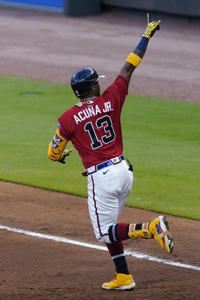 Fri May 21, 2021 was a pretty big day for the Atlanta Braves Ronald Acuna Jr here he is rounding bases after hitting a grand slam in the second inning against the Pittsburgh Pirates later he tried to come up to the plate to hit left handed but was stopped by Braves manager Brian Snitker. (AP News photo)
