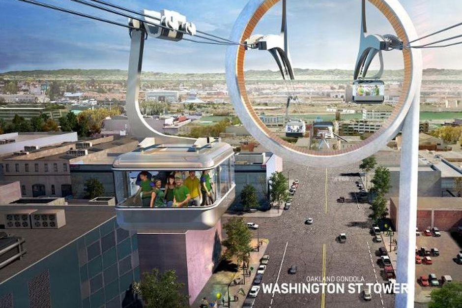 An artist rendering of the Oakland A’s gondola that is expected to take fans from the 12th Street BART station in downtown Oakland to Howard Terminal (photo from Athletics Nation)
