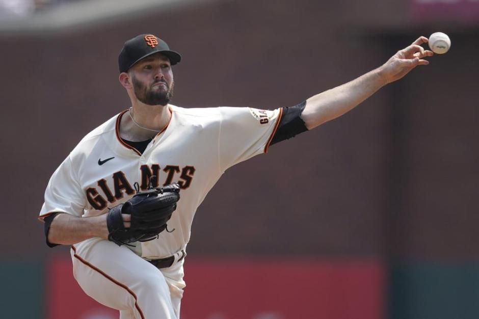 San Francisco Giants starter Alex Wood throws against the Colorado Rockies line up in the first inning at Oracle Park in San Francisco on Sun Aug 15, 2021 (AP News photo)