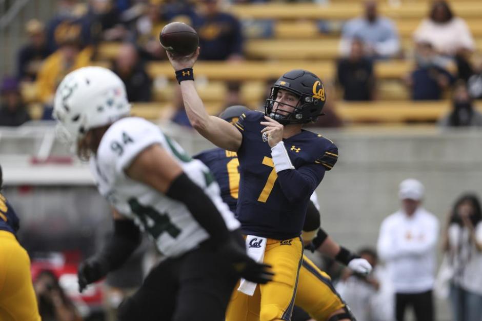 Cal Bears quarterback Chase Garbers passes against the Sacramento State Hornets at Cal Memorial Stadium during the home opener at UC Berkeley on Sat Sep 18, 2021 (AP News photo)