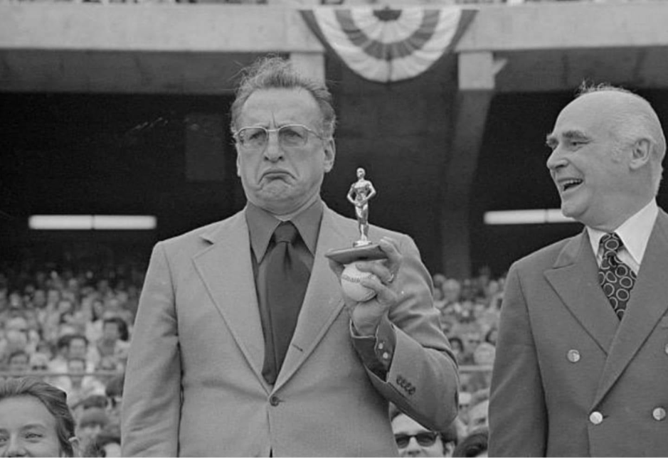 In the photo George C. Scott doing some ‘acting’ with a face showing displeasure as next to him Charlie O. Finley presented him with a small replica of an Oscar with a baseball. Who knows, Scott might have won another Oscar if he was nominated and won for the Charlie O. Finley A’s movie. Obviously we will never know and even if he had won it he would probably have not accepted.