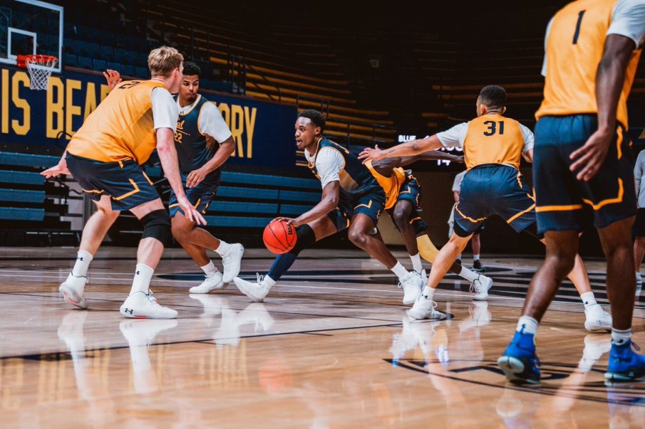 Cal Bears practice offense vs. defense at their home gym Haas Pavilion in Berkeley as they prepare to meet UC San Diego in their home opener on Tue Nov 9, 2021 (photo from @CalMBBall)