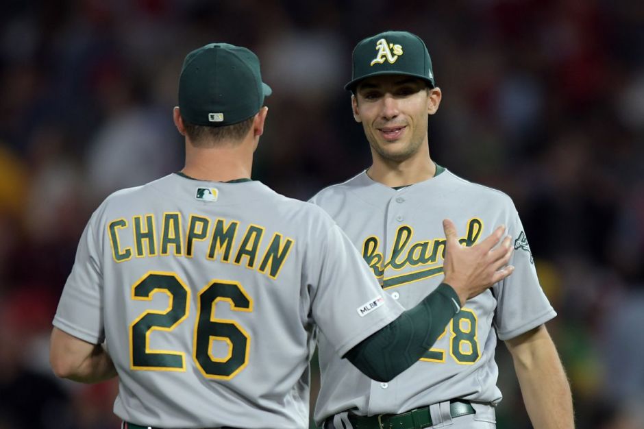 Matt Chapman (26) and Matt Olson (28) look to be seriously shopped by the Oakland A’s this off season as the A’s are expected to be putting a lot of free agents up on the trade block (file photo Athletics Nation)