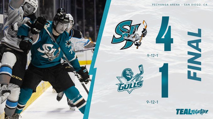 The San Jose Barracuda scored four unanswered goals in the third period as they defeated the San Diego Gulls 4-1 on Saturday night at Pachenga Sports Arena. It was the first victory for San Jose against San Diego this season after losing the first four games of the season series.