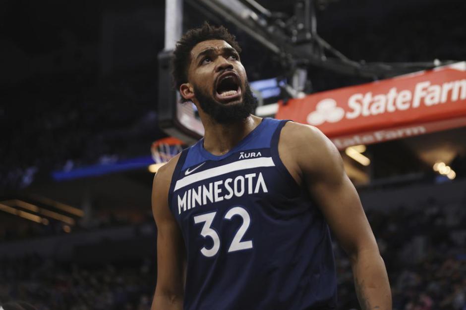 Talk of the Towns, the Minnesota Timberwolves center Karl-Anthony Towns (32) is thrilled after scoring against the Golden State Warriors at the Target Center in Minneapolis on Sun Jan 16, 2022 (AP News photo)