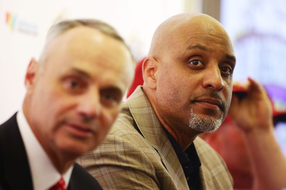 Major League Baseball Commissioner Rob Manfred (left) and the Players Union Rep Tony Clark (right) both sides will meet again to discuss how to settle the lockout on Tue Jan 25, 2022 (file photo from talkingchop.com)