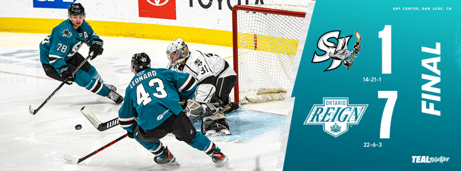 The high-speed bullet train known as the Ontario Reign continued its remarkable season with a 7-1 onslaught over the San Jose Barracuda on Thursday evening at SAP Center.