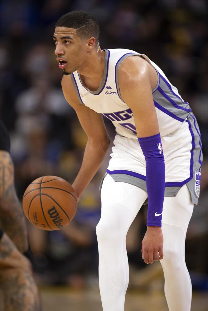 Sacramento Kings guard Tyrese Haliburton dribbles the ball during the first quarter against the Golden State Warriors on Thu Feb 3, 2022 at Chase Center in San Francisco (AP News photo)