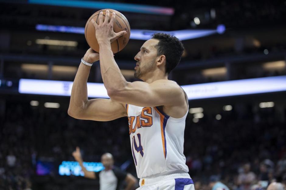 The Phoenix Suns Landry Shamet takes a three point shot against the Sacramento Kings in the overtime stanza for what would be the game winner at Golden One Arena in Sacramento on Sun Mar 20, 2022 (AP News photo)