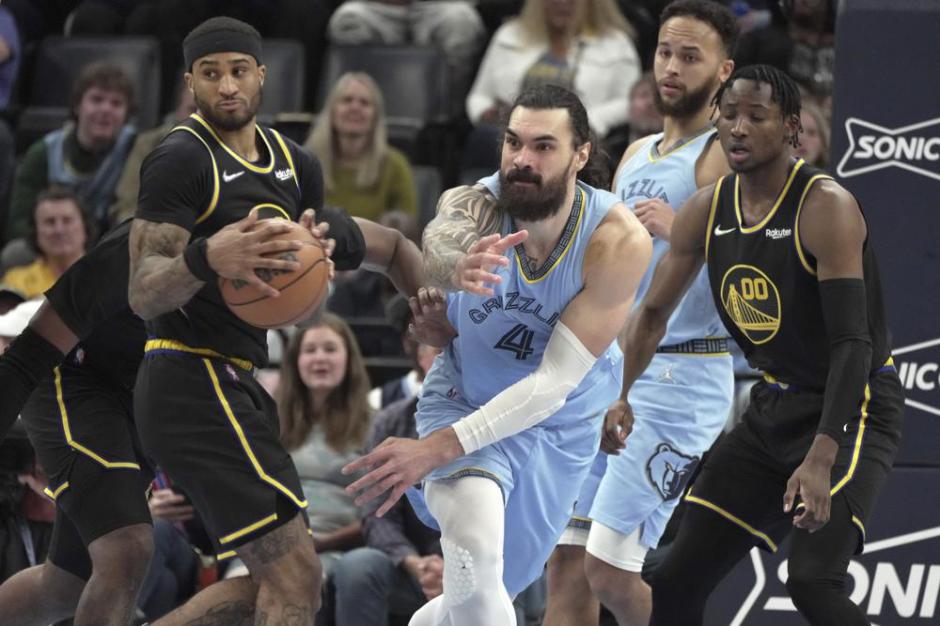 Grizzlie Adams: Memphis Grizzlies’ Steven Adams (4) loses the ball as the Golden State Warriors’ Gary Payton ll, left gets a grip on it at the Fed Ex Forum in Memphis Mon Mar 28, 2022 (AP News photo)