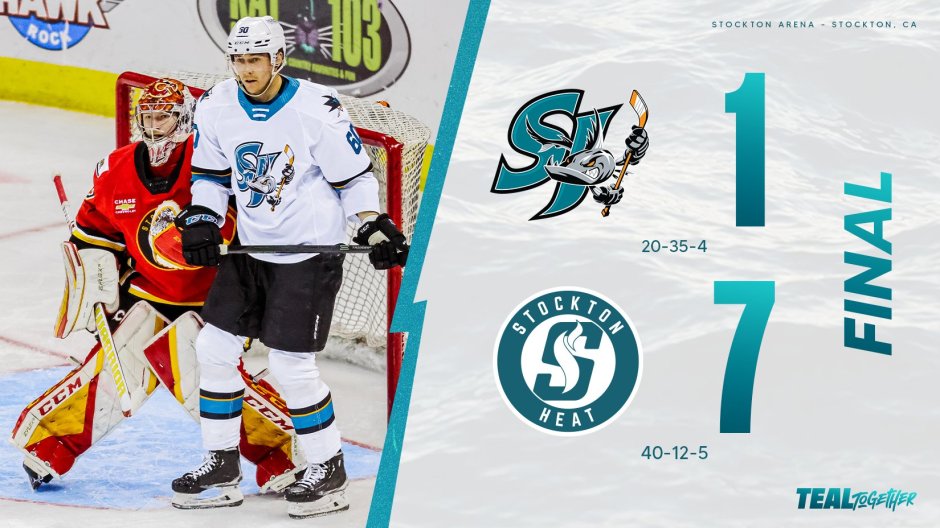 Read and weep the San Jose Barracuda get crushed in a six goal contest against the Stockton Heat at the Stockton Arena on Sat Apr 2, 2022 (image by the San Jose Barracuda)