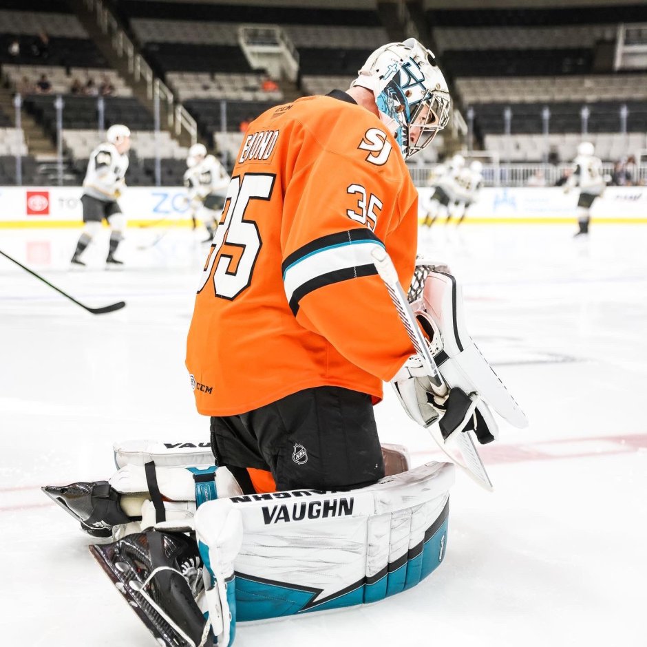 The Henderson Silver Knights kept San Jose Barracuda goaltender Zachary Emond (35) busy all day long with 26 saves on 33 shots on fan appreciation day at SAP Center in San Jose on Sun Apr 10, 2022 (photo from the San Jose Barracuda)