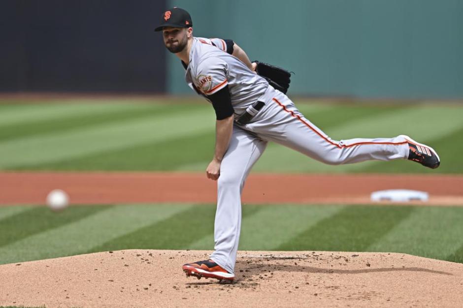 San Francisco Giants starting pitcher Alex Wood delivers in the first inning against the Cleveland Guardians at Progressive Field in Cleveland Sunday, April 17, 2022. Wood is the starting pitcher against the Washington Nationals Fri Apr 29, 2022 at Oracle Park in San Francisco (AP News photo)
