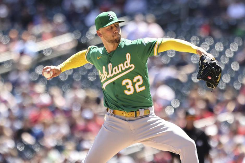 Oakland A’s starter James Kaprielian took the loss but it was his best outing thus far this season throwing against the Minnesota Twins at Target Field in Minneapolis on Sat May 7, 2022 (AP News photo)