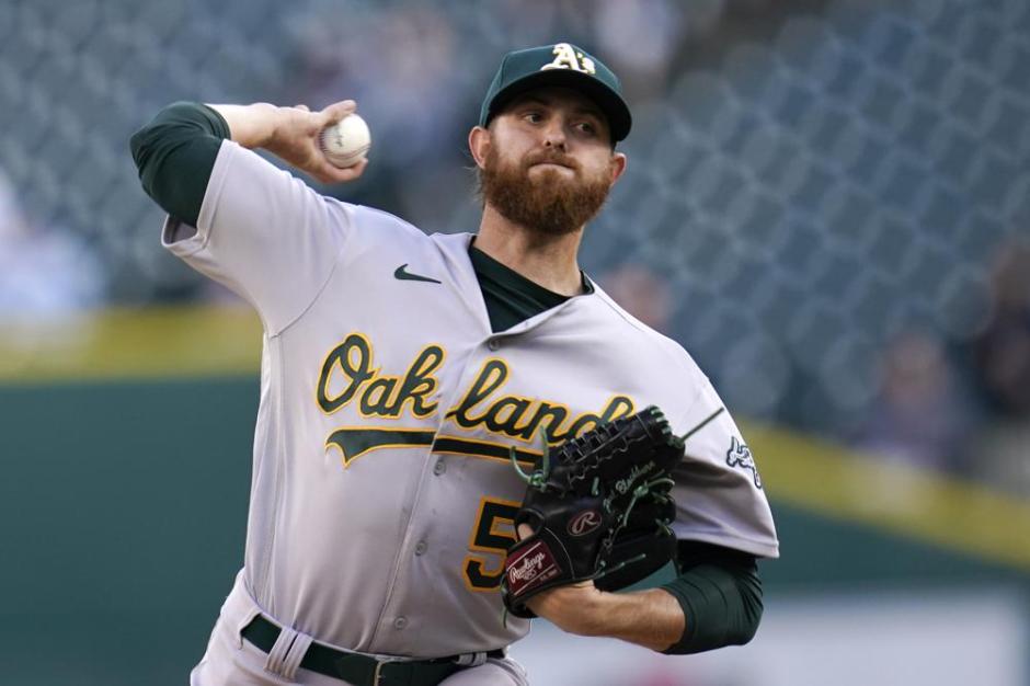 Oakland A’s starter Paul Blackburn prepares to deliver against the Detroit Tigers in the first inning of action at Comerica Park in Detroit on Mon May 9, 2022 (AP News photo)