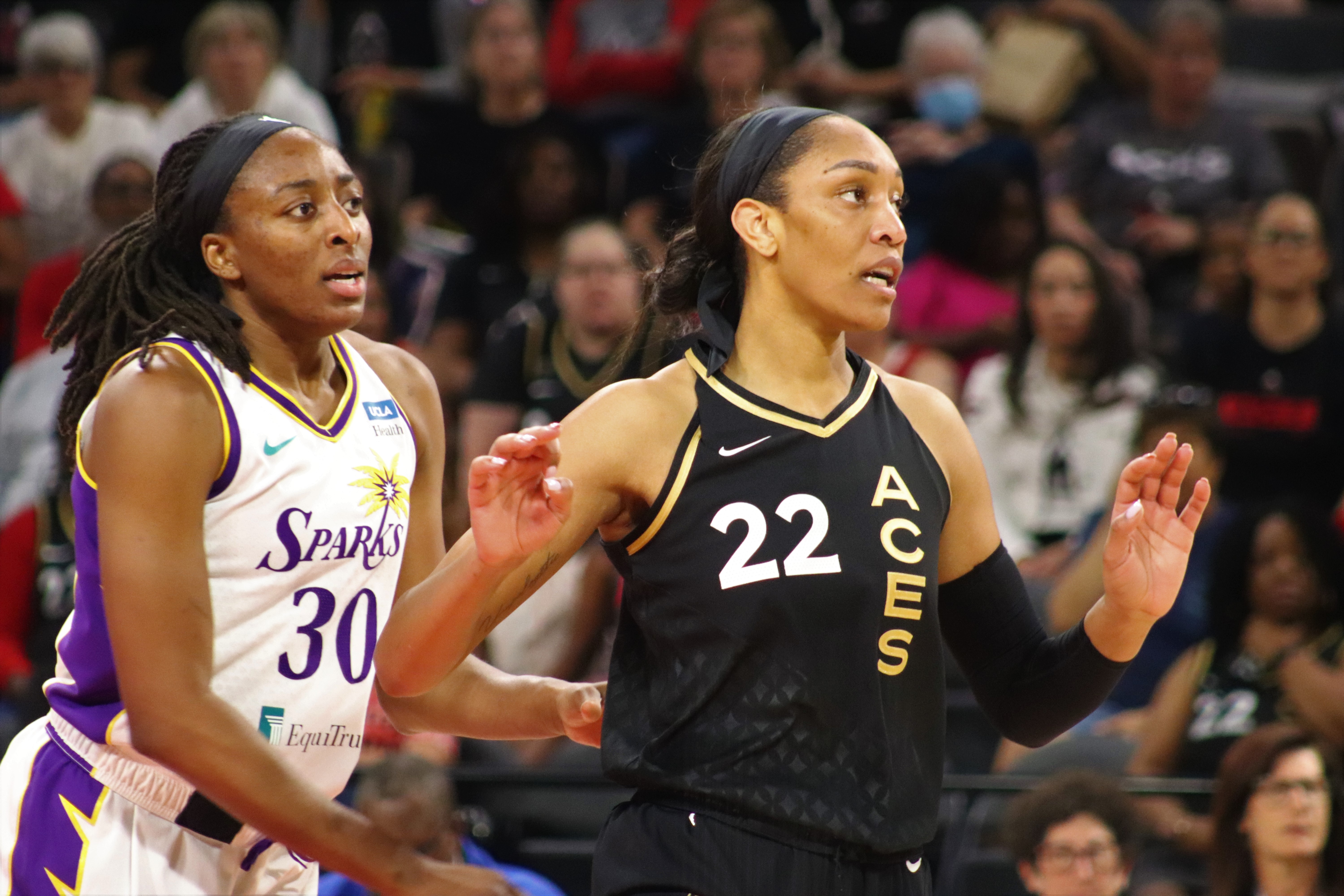 The Aces knocked down 18 three-point shots enroute to a 104-76 blowout win over the Los Angeles Sparks at Michelob Ultra Arena.