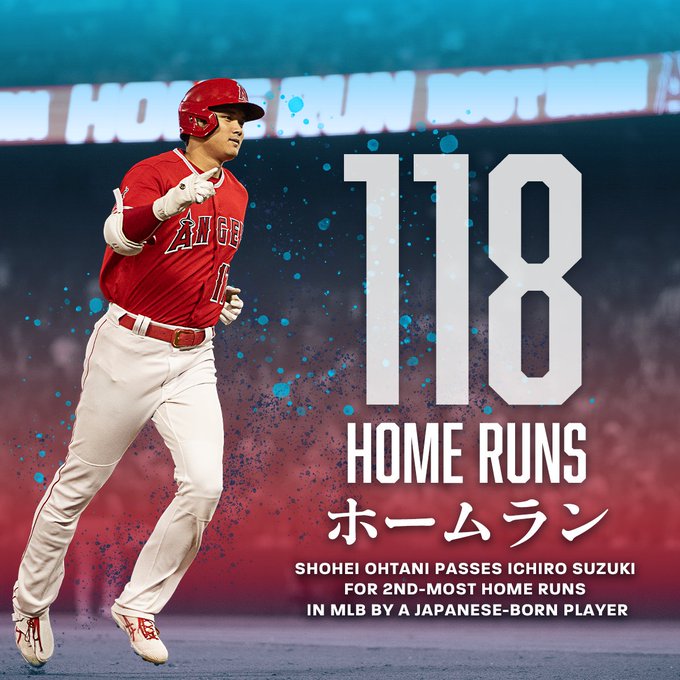 The Los Angeles Angels Shohei Ohtani clobbered his 118th career home run and his 25th of the season Tue Aug 9, 2022 against the Oakland A’s at the Oakland Coliseum on Tue Aug 9, 2022 (@Angels photo)