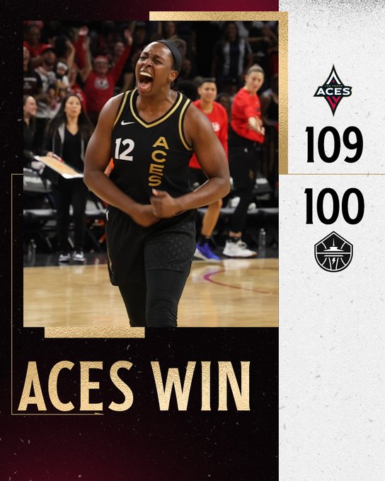 The score says it all as the Las Vegas Aces advance to the first round of the playoffs on Wed Aug 17, 2022 (@LVAces photo)