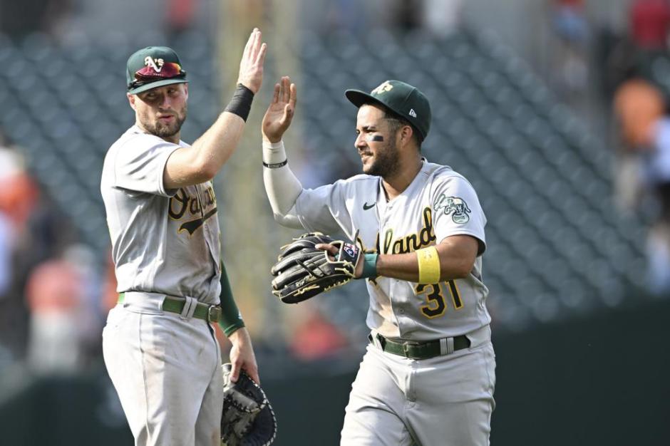 Seth Brown was swinging the heavy bats for the Oakland A’s (50-85) hitting two home runs and Oakland got some nifty pitching out starter Adrian Martinez and four relievers for a 5-0 win over the Baltimore Orioles (71-62) at Camden Yards in Baltimore to avoid getting swept in three games.