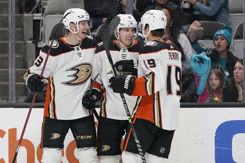 Adam Henrique scored his first two goals of the season for Anaheim, helping the Ducks build a 3-2 lead in the first period. Henrique’s first tally at 5:16 opened the scoring, followed by a pair of goals by Erik Karlsson to give the Sharks a 2-1 lead.