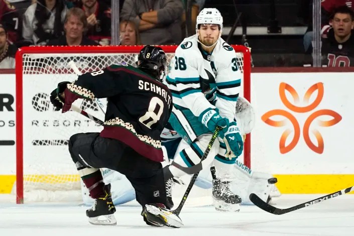 Kahkonen stopped 27 of Arizona’s 29 shots on goal. Vejmelka faced 33 San Jose shots, making 29 saves.