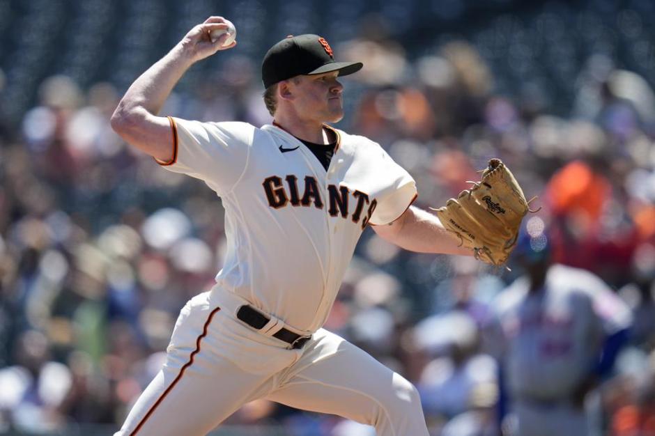 San Francisco Giants pitcher Logan Webb throws during the first inning against the New York Mets at Oracle Park in San Francisco on Sat Apr 22, 2023 (AP News photo)