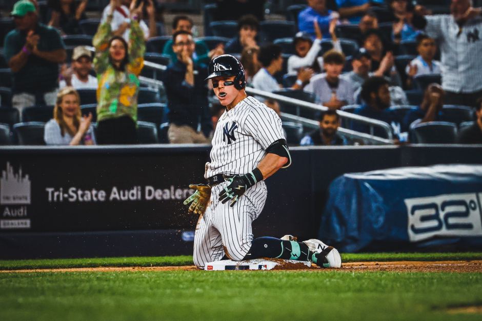 The New York Yankees were knocking on the door of the base knock all night which led to a five run win to open a three game series against the Oakland A’s at Yankee Stadium on Mon May 8, 2023 (@Yankees photo)