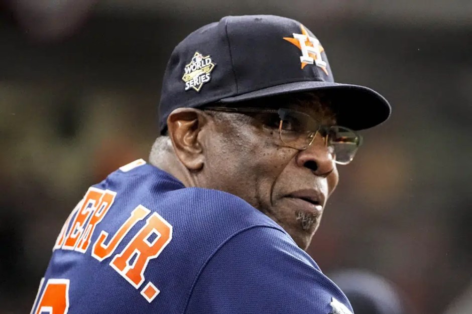 FILE – Houston Astros manager Dusty Baker Jr. watches during the second inning in Game 6 of baseball’s World Series between the Houston Astros and the Philadelphia Phillies, in Houston, Nov. 5, 2022 (AP News file photo)