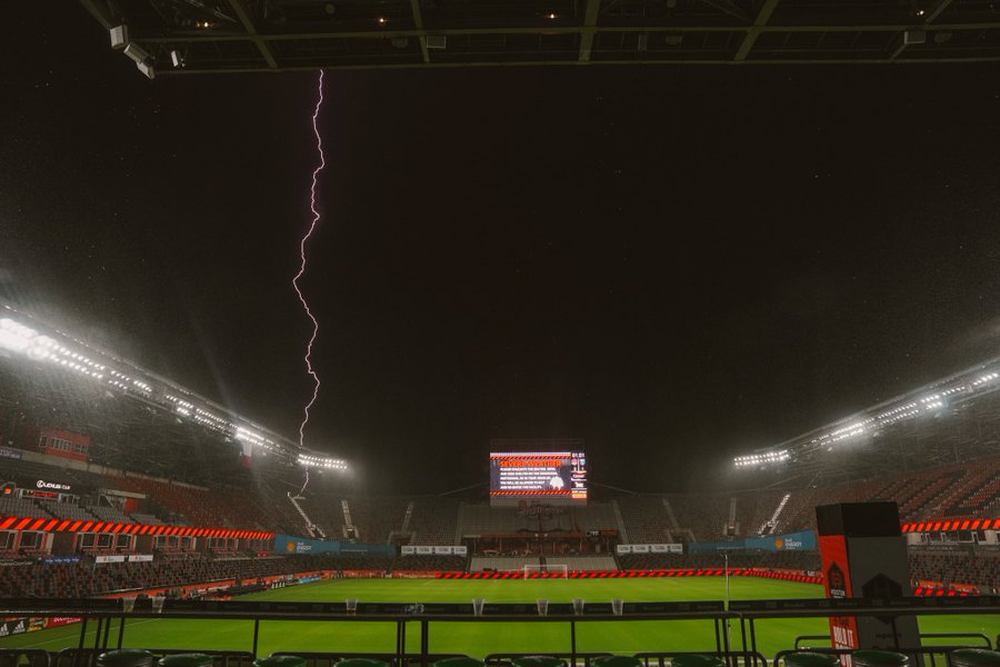Thunder and lightning delayed the match between the Houston Dynamo and the San Jose Earthquakes at Shell Energy Field on Wednesday JUN 21, 2023. (Houston Dynamo)