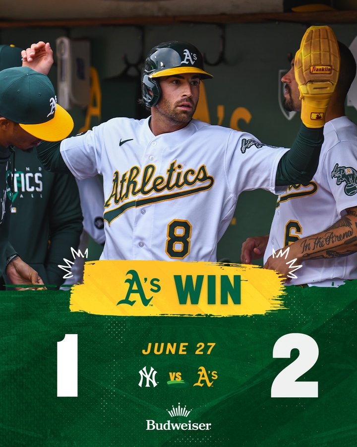The Oakland A’s Tyler Wade contributed big with the bat and glove at the Oakland Coliseum against the New York Yankees on Tue Jun 27, 2023 (@Athletics image)