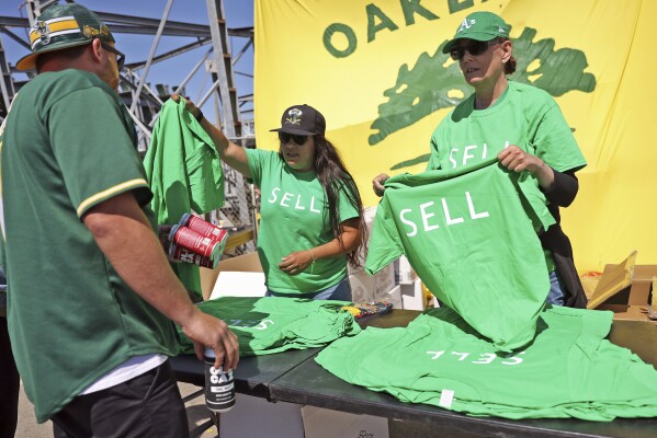 Oakland A’s fans voiced their opinion back on Jun 13, 2023 photo regarding a reverse boycott at the Oakland Coliseum. Fans in Colorado and Los Angeles have joined in the sell the team chant when the A’s have been on the road. A’s fans plan to have a joint reverse boycott at the Coliseum this Sat Aug 5, 2023 with San Francisco Giants fans (AP file photo)